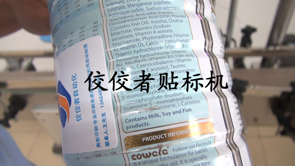 下面是貼奶粉罐的過程和效果,我們就稱之為奶粉罐貼標機,原理同上,請看下圖.