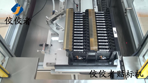 上圖展示的是硬盤(pán)貼標(biāo)機(jī)已經(jīng)將硬盤(pán)放入治具中并移動(dòng)到治具臺(tái)準(zhǔn)備貼標(biāo),下一步就是貼標(biāo)了,如下圖: