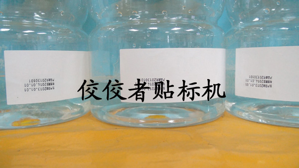 上圖展示的是第一次貼標,即對塑料圓瓶進行頂部的貼標,和平面貼標機的貼標頭是一樣的。下面到了第二次貼圓瓶側標這一步了,在這之前還需要對標簽進行打碼,請看下圖: